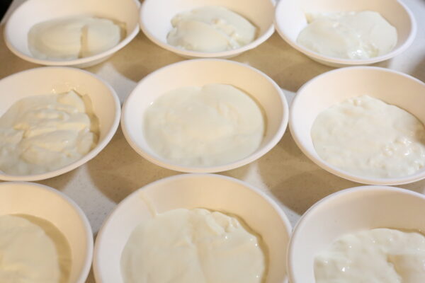 シメのご飯は「麻婆豆腐」で決まり!炊き立てのご飯にかけて、ミニどんぶりでいただきます。ここまでの料理でもみなさんかなり食べた様子ですが、やっぱり美味しいものは止まりません。キッチンでご飯に麻婆豆腐が盛られた瞬間から、次々とお客さま自ら取りに来る盛況ぶりでした。とろみのある「麻婆豆腐」の辛み、コク、そしてピリッと舌を刺激する山椒もいい感じと合わせて、とってもご飯と合うのです。津嘉山フェフが自称「稀代のマーボークリエイター」と名乗るだけの事はある、納得の味でした。