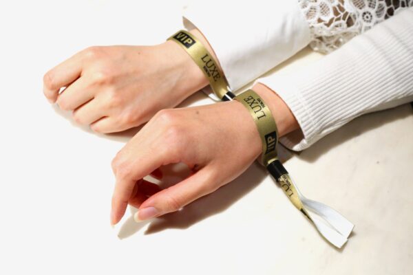 受付が終了した方にはVIPの証、ゴールドのリストバンドを付けていただきます。
