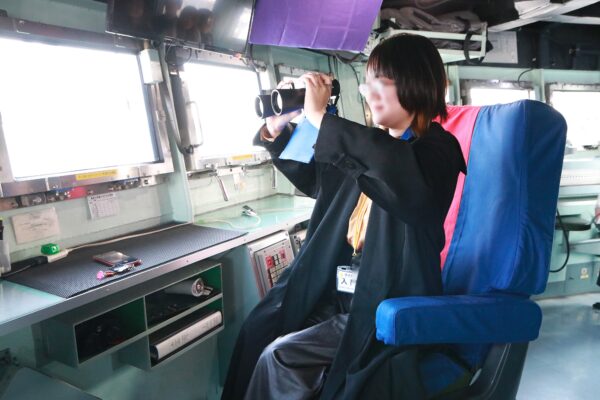 艦の司令塔でもある艦橋を見学。ここには艦の航行に必要な情報が表示されるモニターや、レーダー、GPSなどの機器が設置されています。また、艦の速度や方向などを制御する操作盤や、通信機器も設置されています。窓から見える青い海と空の景色も最高です。