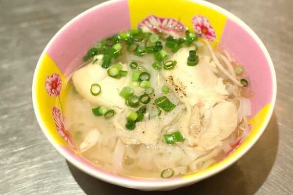 「フォー」はベトナムの国民食であるライスヌードルを使ったスープ料理です。米粉で作られた平たい麺が特徴で、ベトナムでは朝食としてよく食べられているそうですよ。提供していただいた「鶏肉のフォー」は、鶏ガラと豚骨、玉ねぎ、生姜、ベトナム調味料を長時間煮込んで旨味を抽出したコクがあるのにスッキリとした味わいの特製スープで、これがまた「フォー」に合うんです!柔らかく煮込んだ鶏モモ肉のトッピングも最高に美味しかったです。