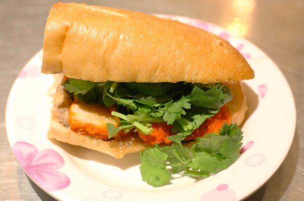 パンに肉、野菜、ハーブ、ソースなどを挟んだ、ベトナムのサンドイッチです。「バインミー」は本来ベトナム語で「パン」という意味ですが、そのパンに具材を挟んだバインミーサンドイッチが略されて「バインミー」と呼ばれるようになったそうです。ベトナムには「バインミー」の屋台がいたるところにあって、どこでも買える手軽なファストフードで、国民食と呼ばれるほどポピュラーな食べ物なんだそうですよ。