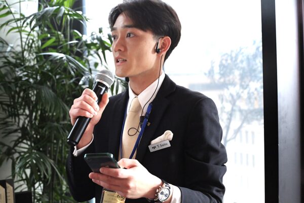 お待ちかねの開演の時刻となりました。今回の「スタッフ推薦者中心☆テラス夜景Party」もたくさんのお客様にお集まりいただきました。ここで司会によるご挨拶と、パーティーの流れや注意事項を説明させていただきます。