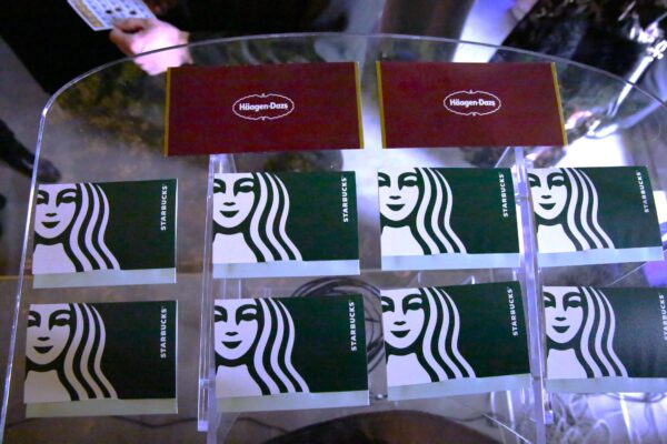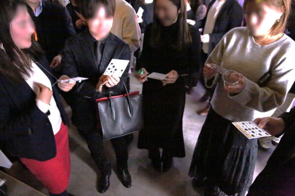 みなさんが多くの異性と交流していただくために、交流可能なゲーム企画をパーティーの途中で実施させていただしました。今回行ったのは「ビンゴゲーム」です。これは参加者全員で盛り上がれる、ゲーム企画の定番ですよね!司会者から数字が発表される度に参加者からは大きな歓声が沸き起こっていました。景品はスターバックスとハーゲンダッツの商品券。しかもそれぞれの金額が異なっていて、手に取って中身を確認して、さらに盛り上がるという展開に、会場の雰囲気はヒートアップしていました。