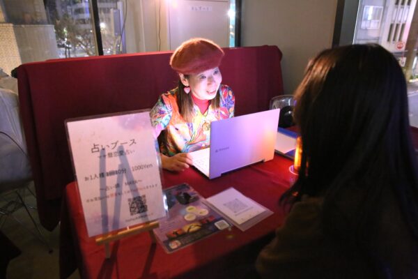 会場内には特別ブースを設け、占い師『MAYA』がマヤ暦による占いを実施しました。注目の「マヤ歴」占いを希望するお客様の列は、開場と同時に始めってイベントの最後まで途切れることはありませんでした。