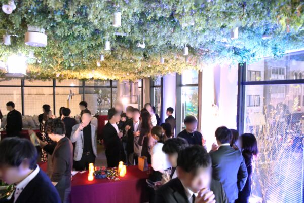 会場はあっという間に人でいっぱい!入場と同時に異性と交流していただいてもOKです。大人数のパーティーでは、人数の数だけ新しい出会いがあります。みなさん、積極的にコミュニケーションを取ってくださいね!!