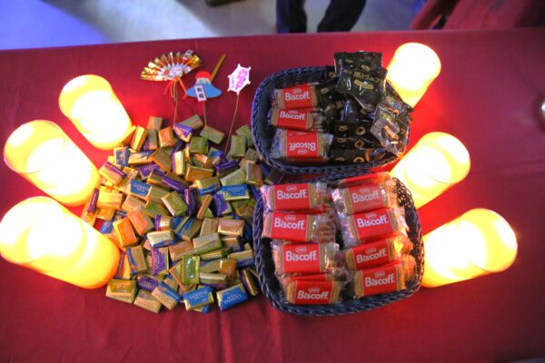 お酒のおつまには、チョコやビスケット、ナッツなどもご用意しています。ブレイクタイムにお試しください。もちろん食べ放題です。