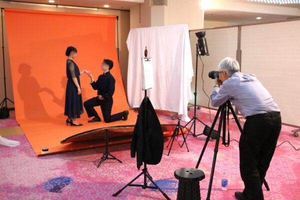 受付を済ませた多くのカップルは、人気の写真撮影コーナーへと向かいます。ここではプロのカメラマンが特設撮影ブースを設置。卒業の記念写真を撮ることができます。片膝をついてプロポーズをするポーズだったり、抱き合ってみたりと、見ている方が恥ずかしくなるようなラブラブショットの連発。きっと一生に一度の素敵な写真が撮れたのではないでしょうか!