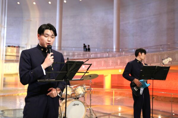 二番手として登場したのは、紅太鼓同好会のみなさん。初心者から始め外部講師の指導のもと、力強さと繊細さを兼ね備えた演奏を目指して、団結力を高めています。コロナ禍では活動中止が余儀なくされ、一時は廃部の危機にまで陥りましたが、2025年9月に見事復活を遂げました。心に響く力強い太鼓の音色、これからの更なる躍動に期待しましょう。