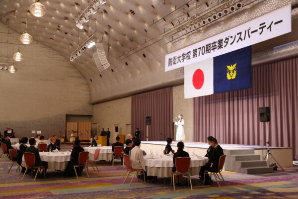 2026年は、防衛大学校にとっても「第70期」という大きな節目の年。会場となる『飛天』の天井高23mを誇る大空間には、将来の幹部自衛官としての誇りを纏った凜々しい制服姿の男子学生と、色とりどりの華やかなフォーマルドレスに身を包んだ女性たちが集いました。