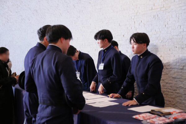 12時からの受付を前に、参加者を迎える防大生スタッフの準備も万端です。