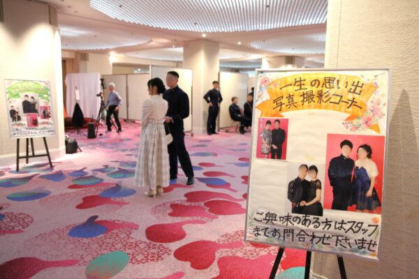 受付を済ませた多くのカップルは、人気の写真撮影コーナーへと向かいます。ここではプロのカメラマンが特設撮影ブースを設置。卒業の記念写真を撮ることができます。片膝をついてプロポーズをするポーズだったり、抱き合ってみたりと、見ている方が恥ずかしくなるようなラブラブショットの連発。きっと一生に一度の素敵な写真が撮れたのではないでしょうか!