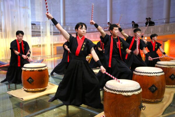 二番手として登場したのは、紅太鼓同好会のみなさん。初心者から始め外部講師の指導のもと、力強さと繊細さを兼ね備えた演奏を目指して、団結力を高めています。コロナ禍では活動中止が余儀なくされ、一時は廃部の危機にまで陥りましたが、2025年9月に見事復活を遂げました。心に響く力強い太鼓の音色、これからの更なる躍動に期待しましょう。