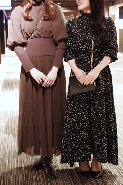 ゆいさん:今日はドレスコードにワンピースとあったので、自分の持っているアイテムの中から一番キレイ目のものを選びました。やっぱり可愛らしく見えた方がいいのかなと思ったので、ふんわりとした質感のものにしました。