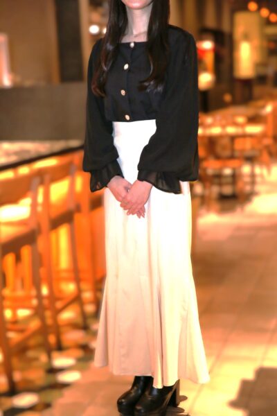 アンナさん:今日は白いスカートで女性らしさを出してみました。それと161センチの身長を生かすために、ヒールを履いてスタイルがよく見えるように意識しました。