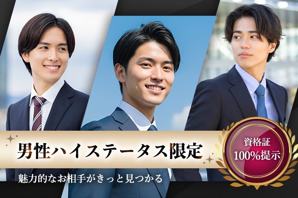 男性は『大企業・上場企業・外資企業・年収700万円以上・公務員・経営者・医師・歯科医師・5大人気士業』のいずれかの男性に限定★男性の資格証も100%提示で安心♪